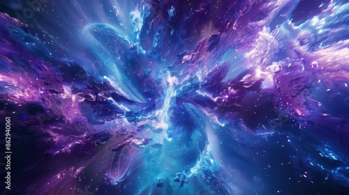 abstract cosmic explosion in vivid blue and purple neon colors futuristic galaxy illustration