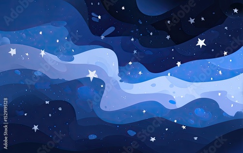 Abstract Cosmic Landscape With Blue And Purple Stars