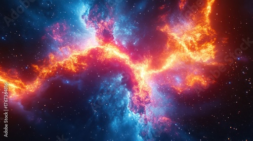Abstract cosmic nebula, fiery, celestial event, space background. Possible use wallpaper, desktop background, science fiction