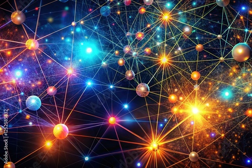 Abstract Cosmic Network: Glowing Dots & Nebula Long Exposure