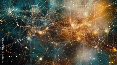 Abstract Cosmic Web with Glowing Stars and Nebulas