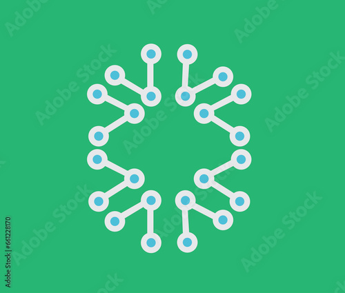 Abstract creative linear sign logo digital technology geometric pattern with green background