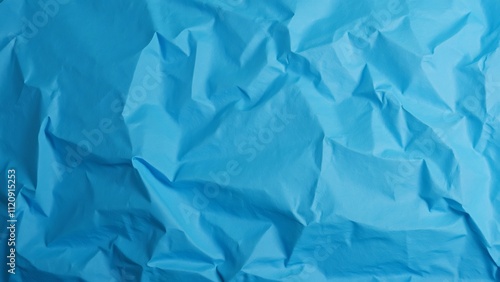 Abstract Crumpled Blue Paper Texture Background, Vibrant Blue Wrapping Paper with Deep Creases and Folds, Perfect for Design Projects