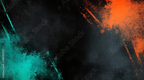 Abstract Dark Background with Orange and Green Splashes