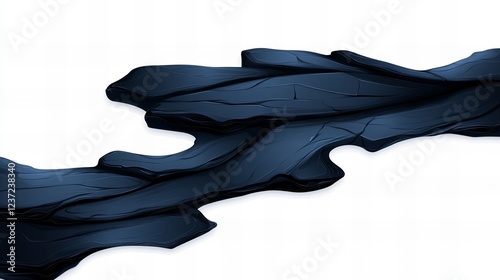 Abstract dark blue rock formation against a white background. A digitally created image.