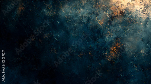 Abstract dark grunge texture featuring a rough, smoky surface with hints of copper and gold, perfect for use in backgrounds, artistic projects, and modern design compositions
