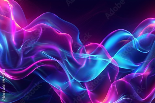 Abstract design featuring glowing, flowing neon waves in vibrant shades of pink, blue, and purple, creating a dynamic and futuristic effect.
