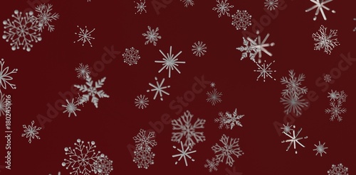 Abstract design of falling snowflakes over a rich red backdrop. Perfect for Christmas, winter themes, backgrounds, or season