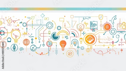 Abstract Design With Geometric Shapes and Lines - Colorful geometric shapes and lines connected in a abstract design, a minimalist and creative illustration with technology concept.