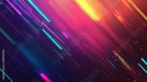 Abstract diagonal lines, vibrant neon colors, dynamic motion blur effect, glowing streaks.