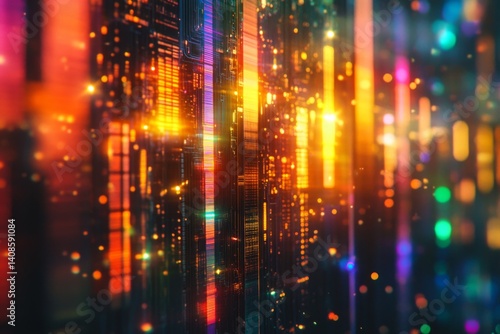 Abstract digital background with bright orange and blue lights