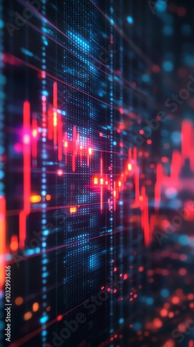 Abstract digital background with red and blue glowing lines depicting a stock market chart.