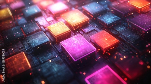 Abstract digital circuit board with glowing colored squares