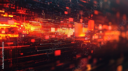 Abstract digital data stream flowing through futuristic circuit board