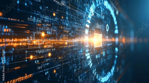 Abstract Digital Data Stream Visualization Showing Complex Code