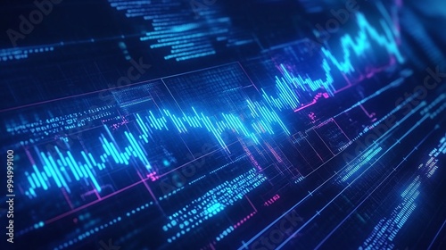 Abstract digital data visualization with glowing blue and pink graphs, symbolizing technology trends and analytics.