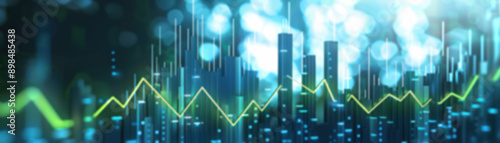 Abstract digital financial growth chart with neon lights, representing data analysis, technology, and market trends against a blue background.