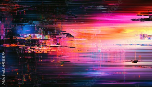 Abstract Digital Glitch Art with Horizontal Stripes and Vibrant Colors