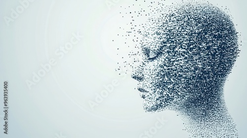 Abstract Digital Human Face Disintegrating into Pixels
