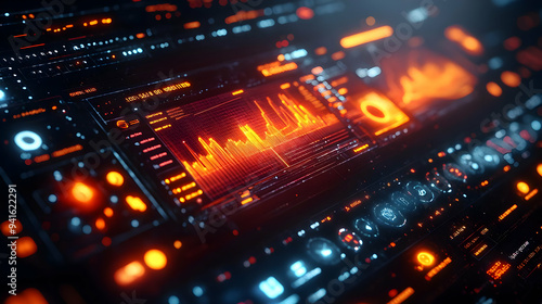 Abstract Digital Interface with Orange and Blue Lights 3D Illustration