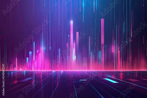 Abstract Digital Landscape with Glowing Lines and Geometric Reflections in Cyber Space