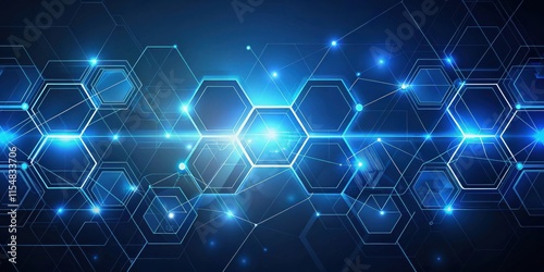 Abstract Digital Network Glowing Hexagonal Structure and Interconnected Lines
