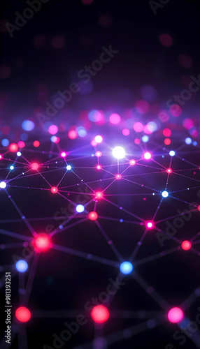 Abstract Digital Network with Glowing Nodes and Connections in Futuristic Design
