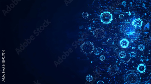 Abstract Digital Technology Background with Glowing Blue Circuitry and Network Design