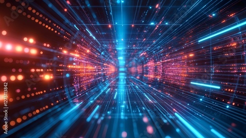 Abstract Digital Tunnel Of Data Streams And Light