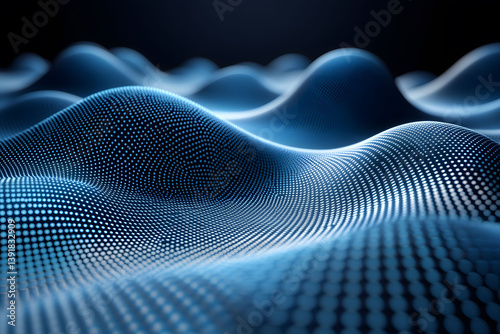 Abstract Digital Waveform Landscape: Blue Dotted Surface Design for Futuristic Aesthetics