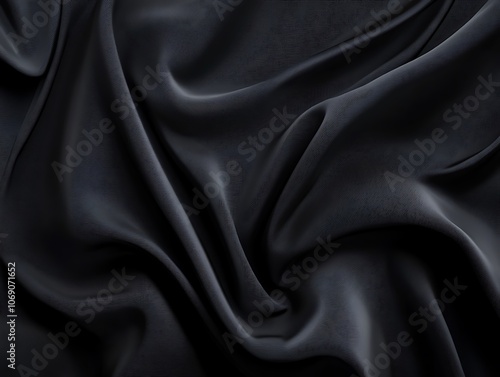 Abstract Draped Black Fabric with a Smooth, Shiny Surface