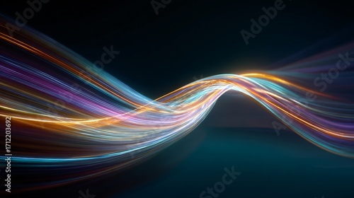 Abstract dynamic motion with curved glowing paths bending into digital wave art