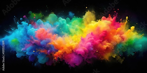 Abstract Explosion of Vibrant Colors Exploding into a Kaleidoscope of Hues Against a Deep Black Background