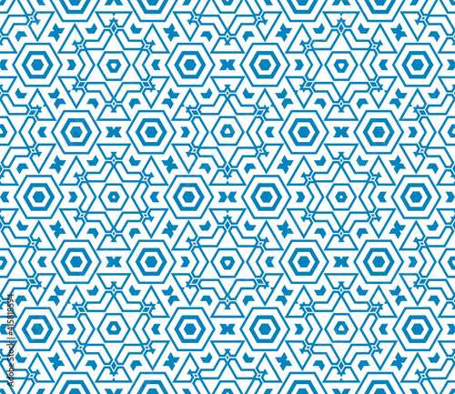 Abstract fantasy thin line hexagon, triangle geometric seamless pattern. Creative mosaic, tile background.