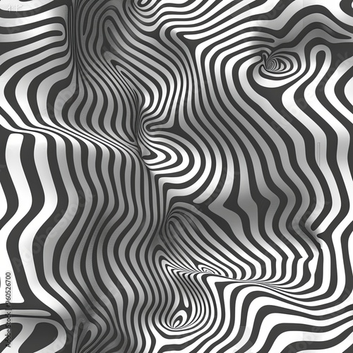 Abstract Fibonacci spiral in white with black stripes, featuring a hypnotic optical illusion, perfect for digital media and graphic design.