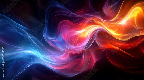 Abstract fiery and icy blue and red swirls of light on a black background.