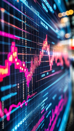 Abstract Financial Data Visualization With Vibrant Neon Lines And Charts, Modern Technology Concept