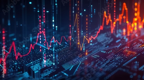 Abstract financial market data and charts, reflecting trading and economic growth and fluctuations.