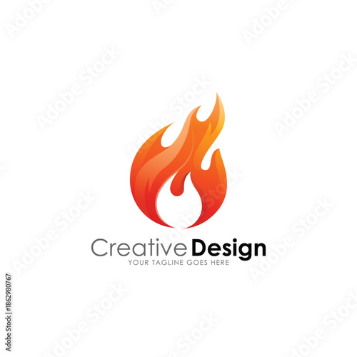 Abstract Fire Flame Logo Vector Design Modern Orange Energy Icon