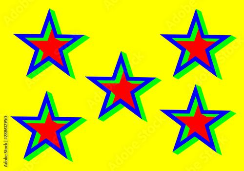 abstract five colorful stars on yellow background