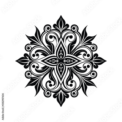 Abstract floral ornament with curves vector illustration isolated on white background