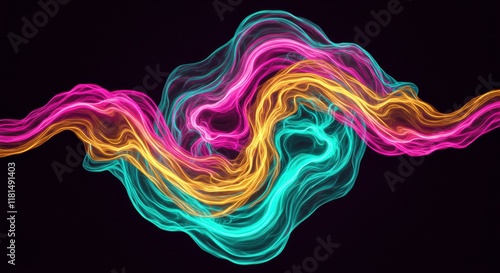 Abstract Flow: An abstract digital artwork featuring vibrant, flowing lines of turquoise, pink, and gold swirling and interacting with each other against a deep black background.