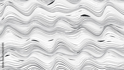 Abstract flow lines background . Fluid wavy shape .Striped linear pattern . Music sound wave . Vector illustration