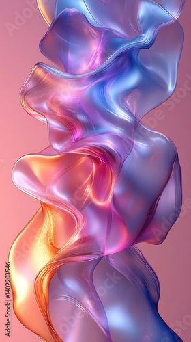 Abstract Flowing Fabric Sculpture With Gradient Colors on Pink Backdrop