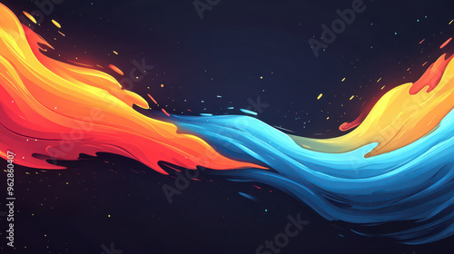 Abstract flowing fire and ice style fluid shapes on dark background with copy space for text