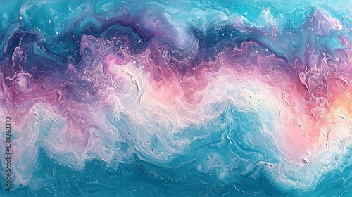 Abstract Fluid Acrylic Pour Painting: Celestial Ocean Dreamscape