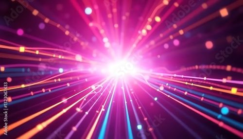 Abstract Futuristic Background Neon Wave Lines Pink, Gold, Blue Colors