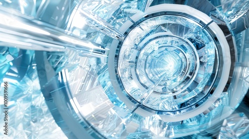 Abstract Futuristic Background with Glowing Blue Shapes and Tunnel.