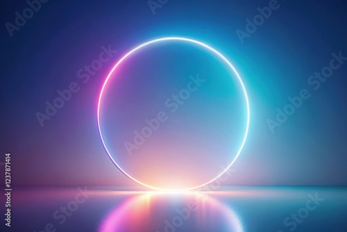 Abstract Futuristic Circular Neon Light Display with Gradient Background and Reflective Surface