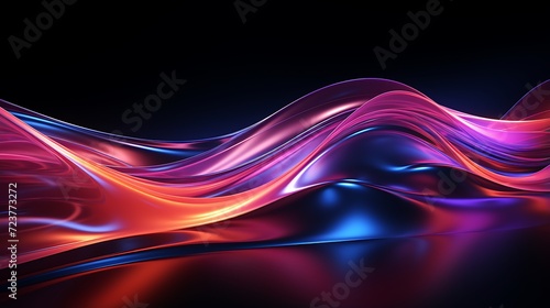 Abstract Futuristic Data Transfer Concept with Vibrant Pink, Blue, and Gold Lines on Dark Ice Arena Background. High-Speed 3D Neon Light Wallpaper for Digital Ultraviolet Experience.